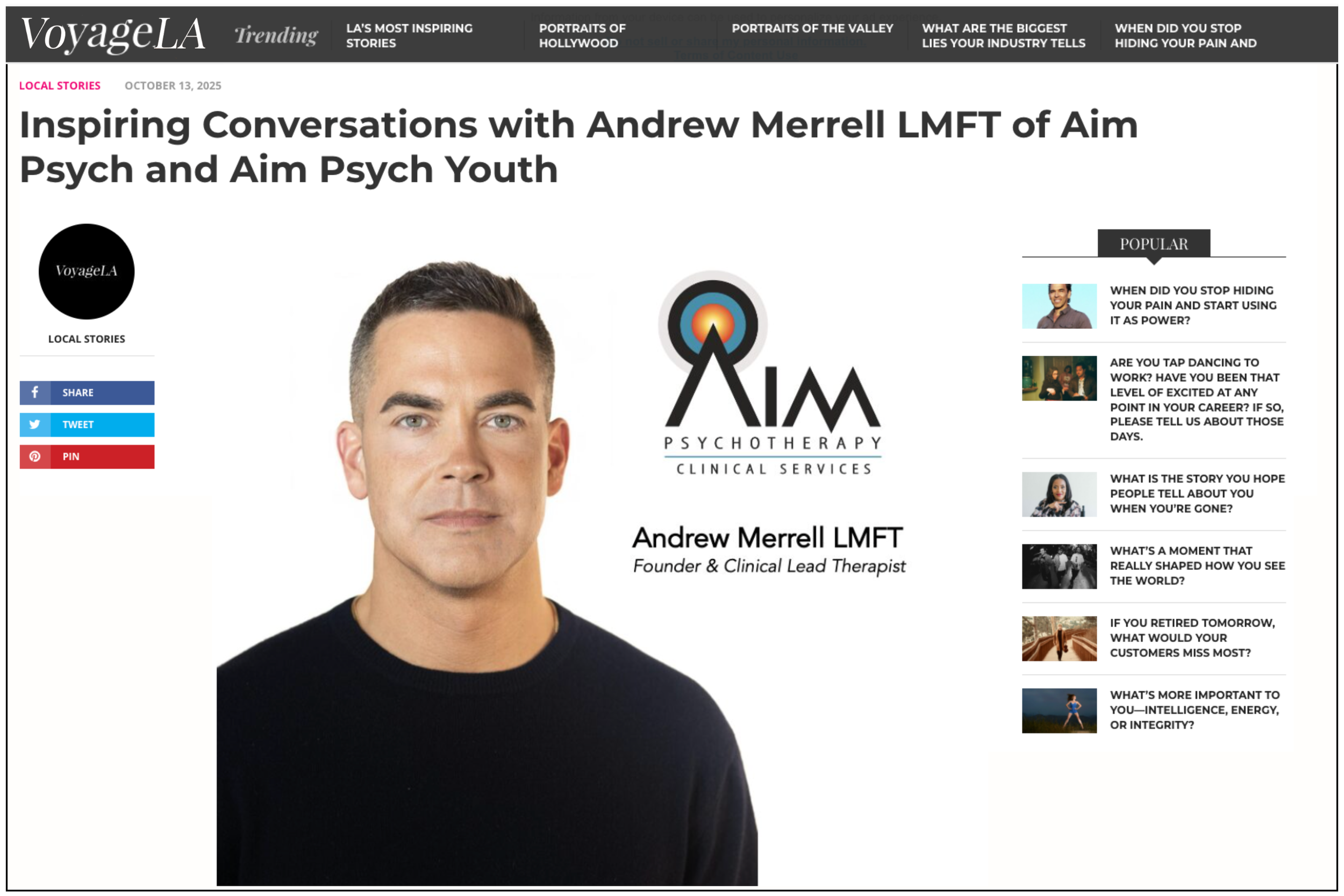 We’re proud to share that VoyageLA recently featured our founder, Andrew Merrell, LMFT, in their Inspiring Conversations series, a collection of stories highlighting Los Angeles professionals making an impact in their communities.